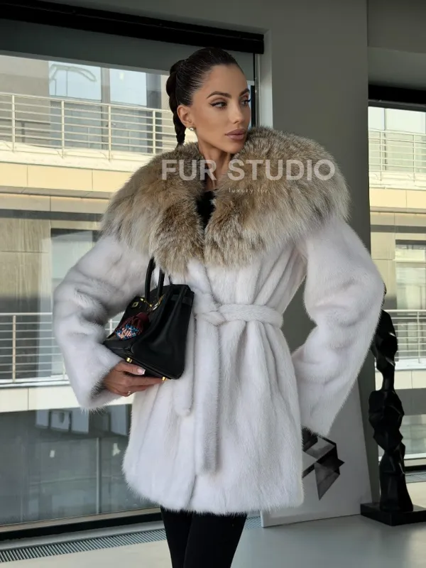 Мех данной шубы аукционная норка, цвет белый. Предлагается в размерах от 42 до 50. Длина модели 75-80 см, что выгодно подчеркивает фигуру девушек. Эта модель идеально подойдет для девушек и женщин, предпочитающих роскошные натуральные меха.