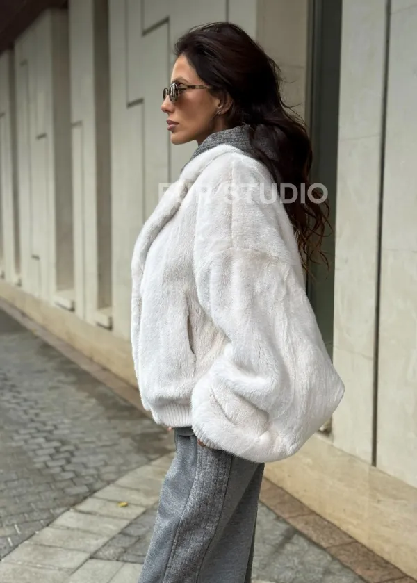 Белый норковый бомбер на резинке 102288