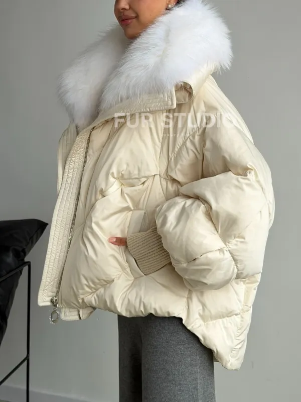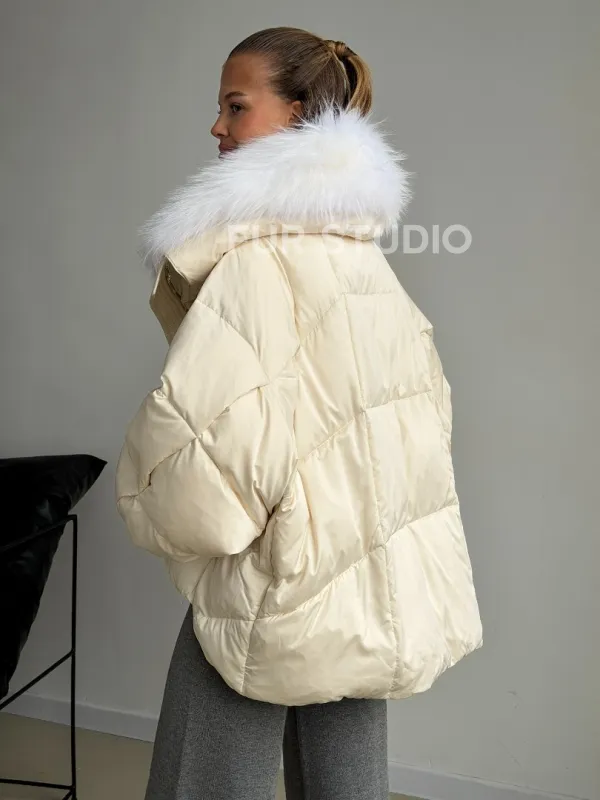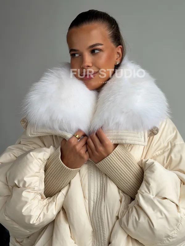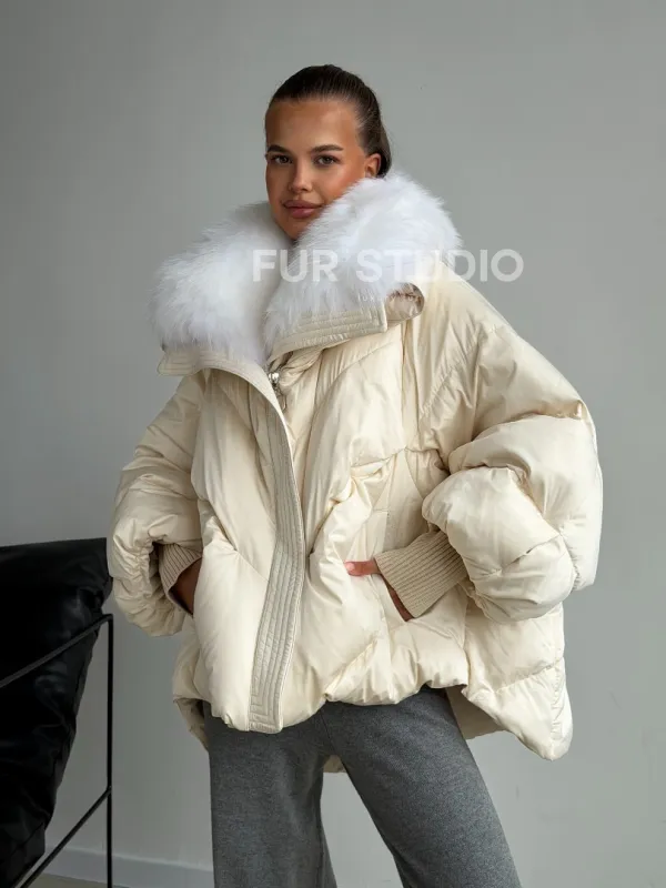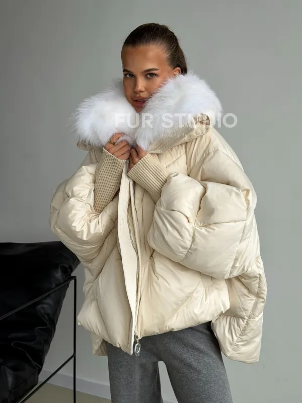 Бежевый зимний пуховик 102581