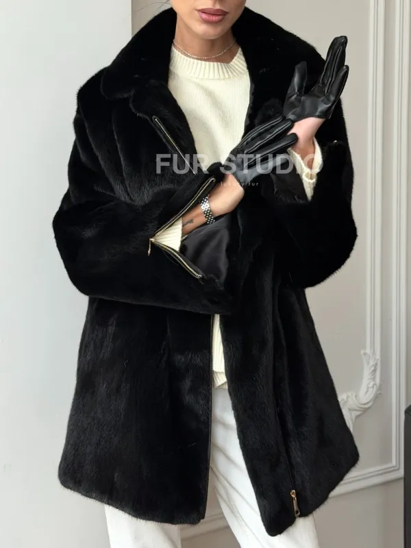 Мех данной шубы аукционная норка , цвет черный. Предлагается в размерах от 42 до 52. Длина модели 70-75 см, что выгодно подчеркивает фигуру девушек. Эта модель идеально подойдет для девушек и женщин, предпочитающих роскошные натуральные меха.