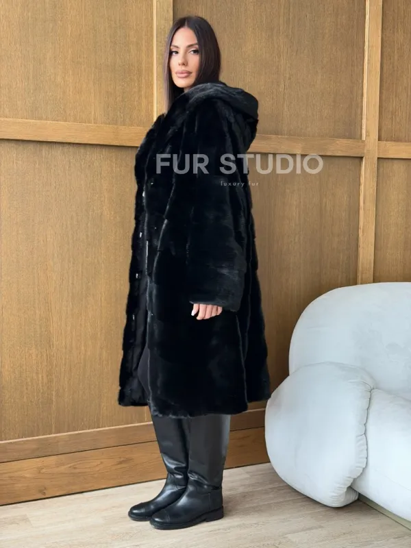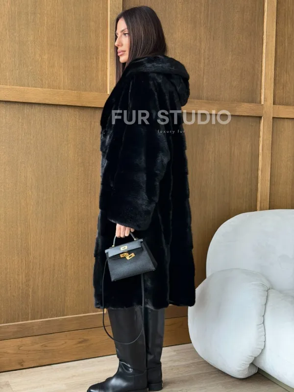 Черная норковая шуба с капюшоном доступна для покупки в нашем шоуруме Furs Studio в . У нас так же есть доставка во все города России. Добавьте немного роскоши в свой гардероб с этой шубой, которая будет служить вам многие годы.