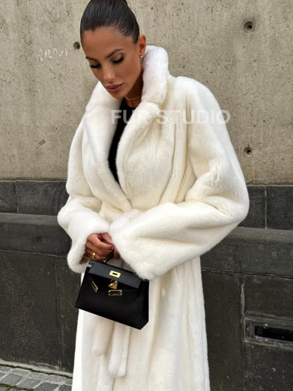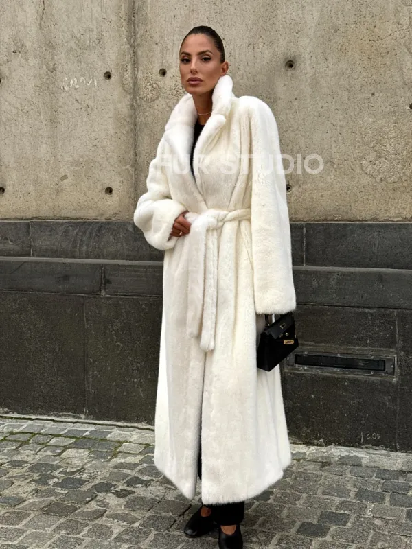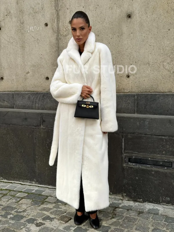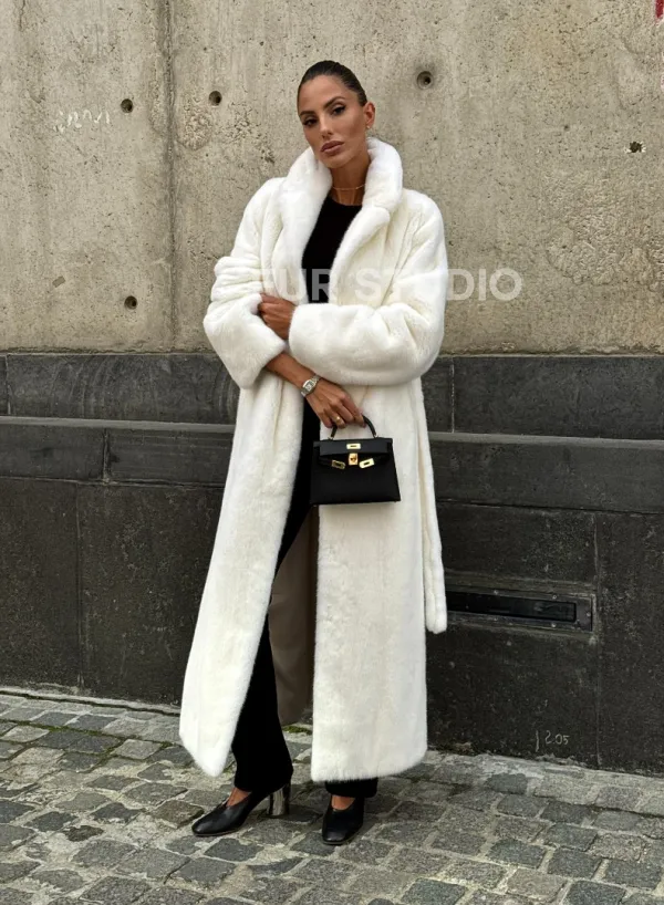 Длинная белая норковая шуба 102111