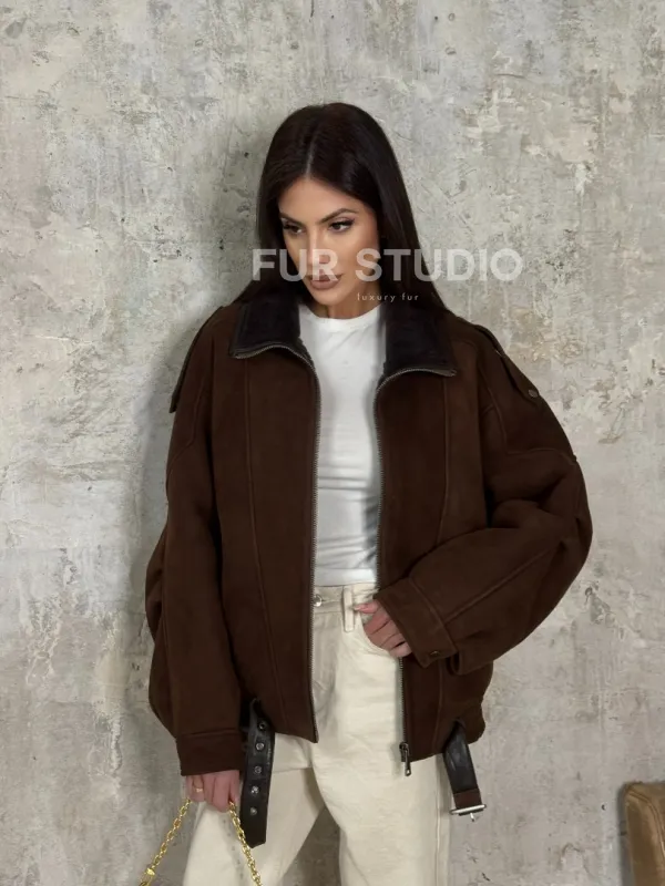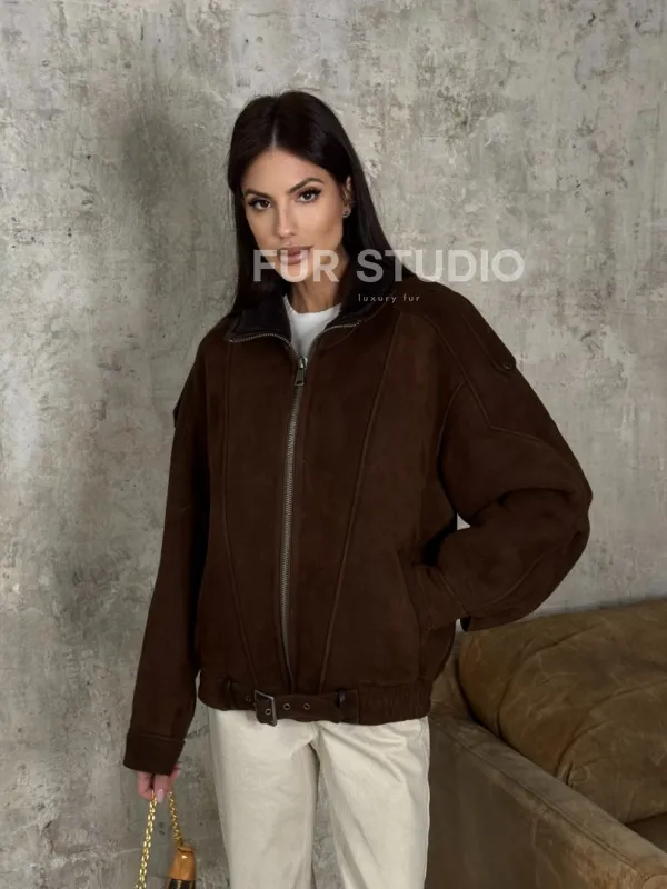 Дубленка - бомбер на молнии из овчины MERINO 101714