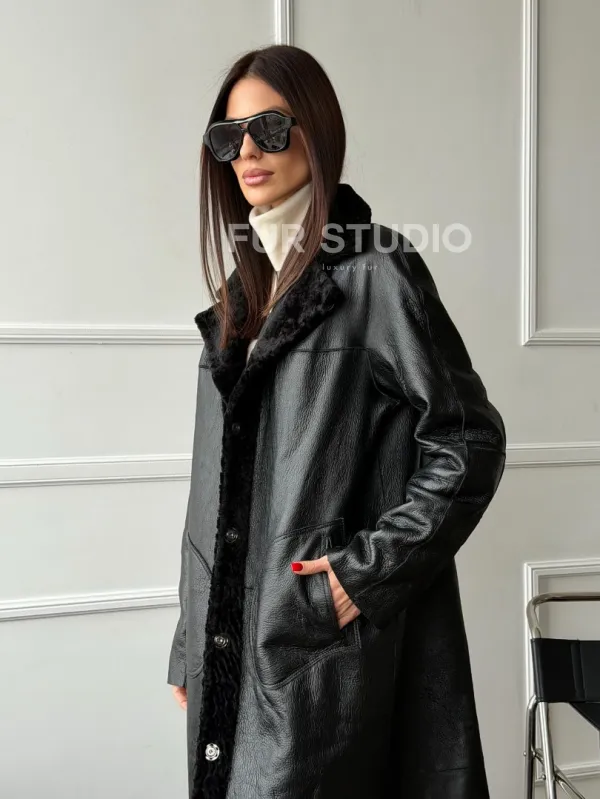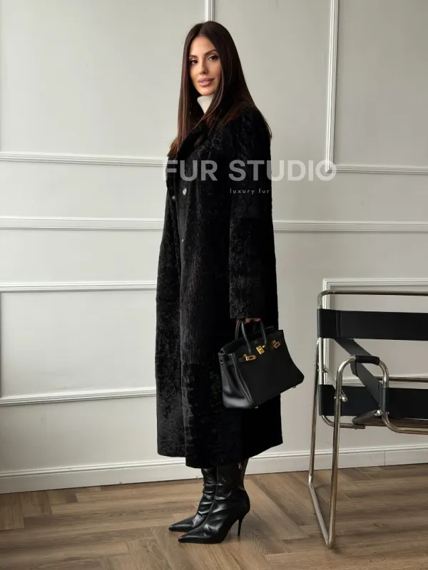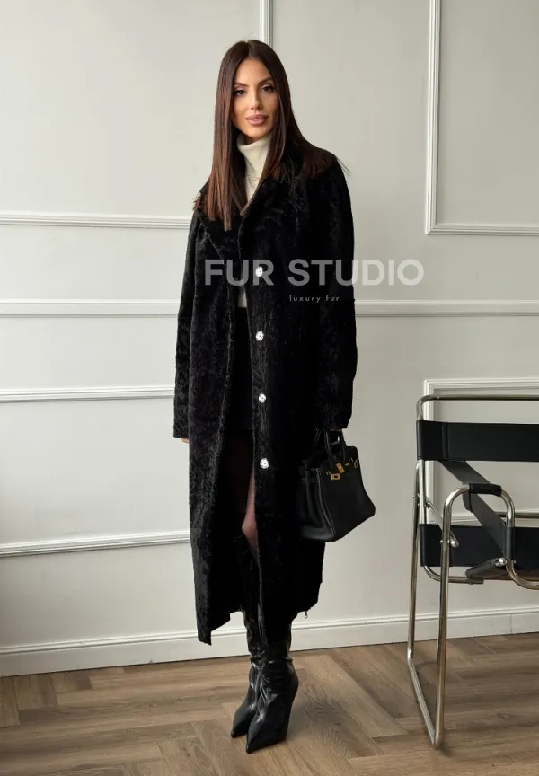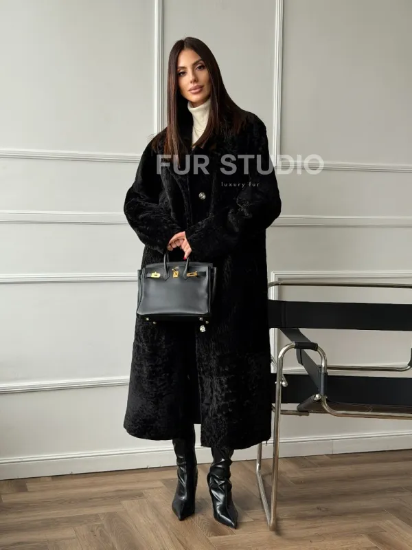 Дубленка из натуральной овчины астраган. Модель предлагается в размерах от 42 до 48. Оптимальная длина моделей 115-120 см подчеркивает линии вашей фигуры. Эта дубленка станет неотъемлемой частью гардероба для тех, кто предпочитает роскошь и утонченность натуральной кожи.