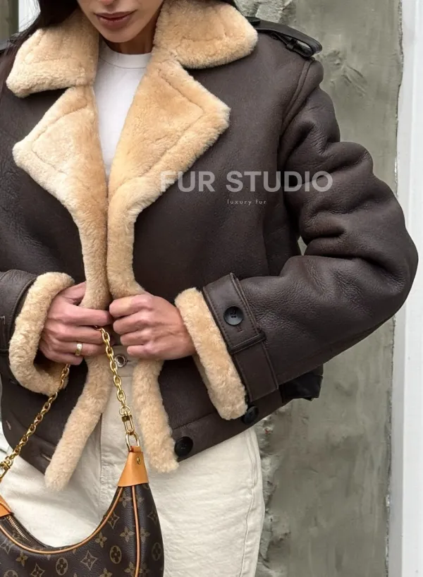 Кроп - дубленка двубортная Dark brown на пуговицах доступна для покупки в нашем шоуруме Furs Studio в , а также предлагается удобная доставка во все города России. Обогатите свой гардероб этой дубленкой, которая прослужит вам многие годы, добавив немного роскоши в ваш повседневный образ.