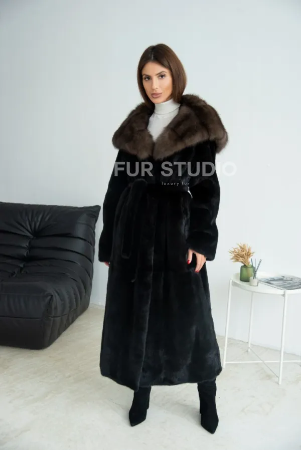 Норка BLACKGLAMA, пластины с капюшоном из меха куницы 100633