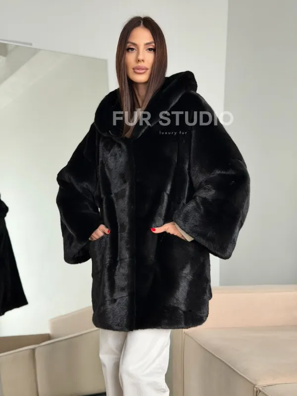 Норка шуба BLACKGLAMA паркет кимоно с капюшоном доступна для покупки в нашем шоуруме Furs Studio в . У нас так же есть доставка во все города России. Добавьте немного роскоши в свой гардероб с этой шубой, которая будет служить вам многие годы.