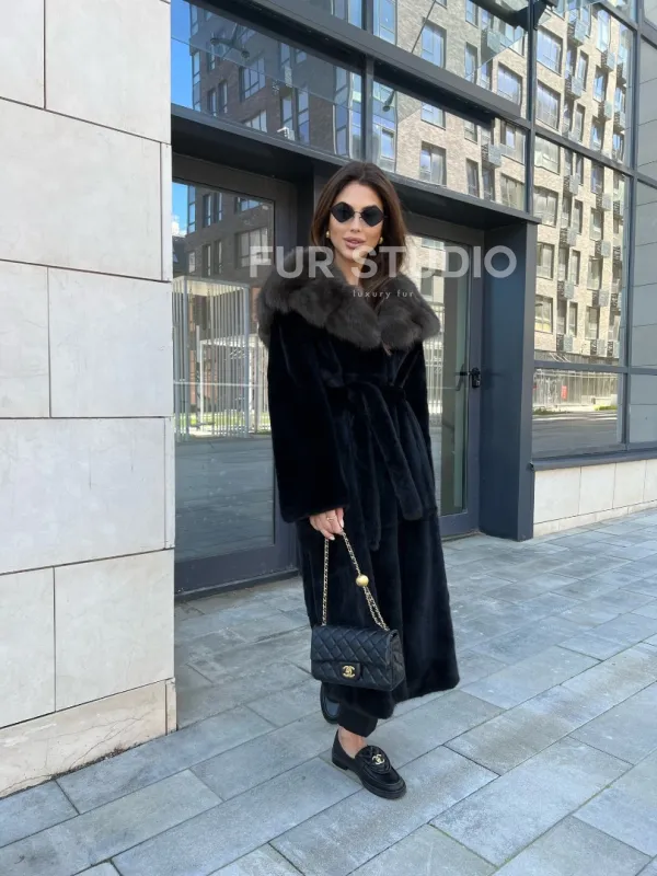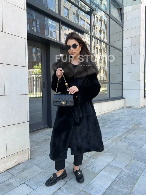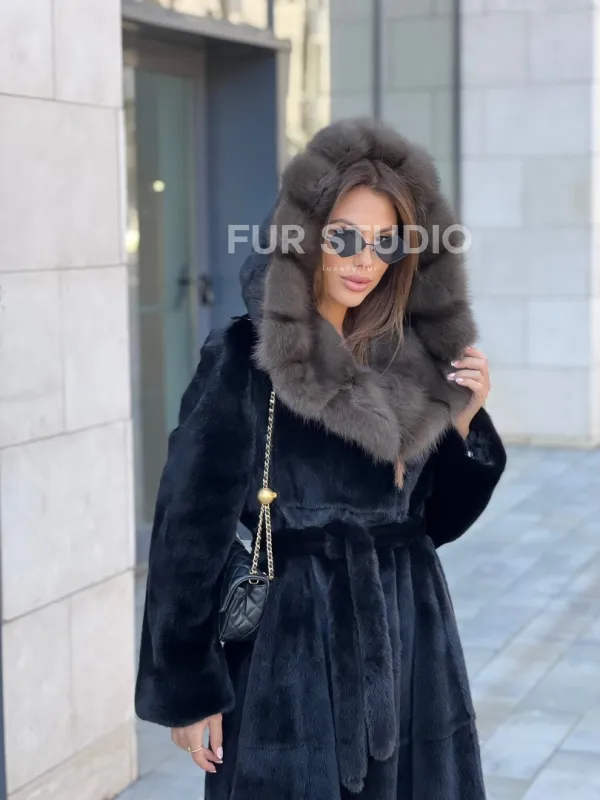 Норковая шуба с капюшоном из куницы - BlackGlama 100244