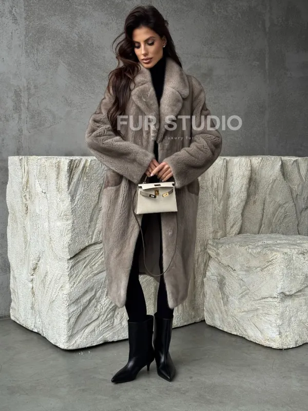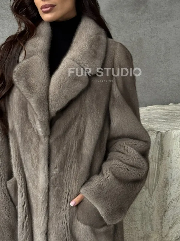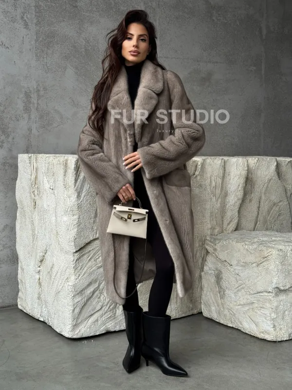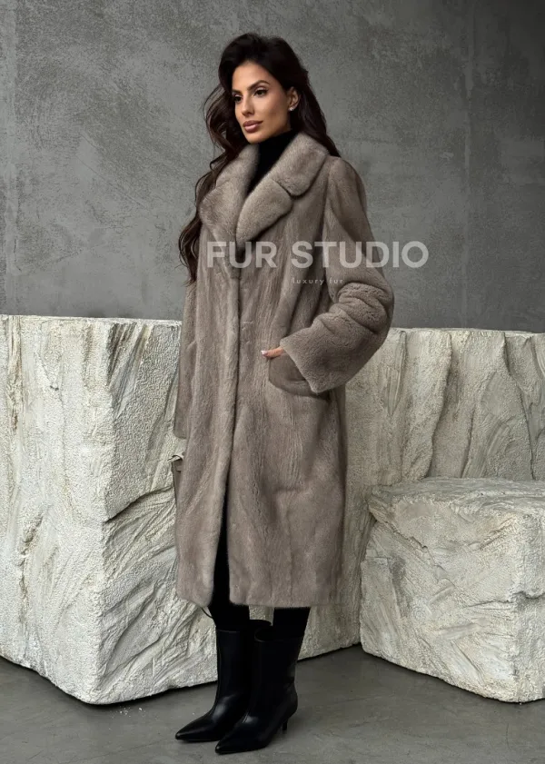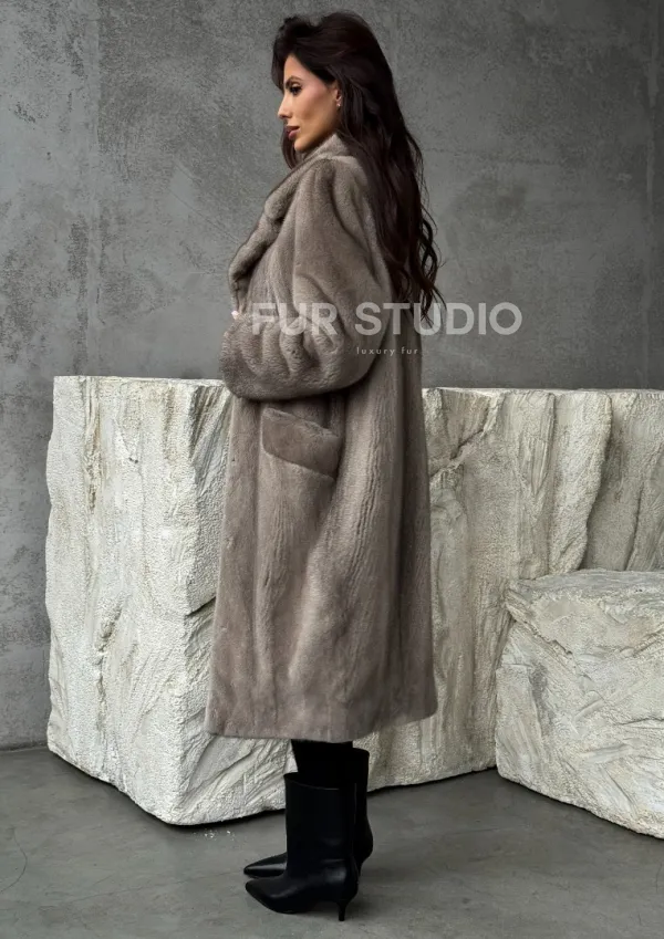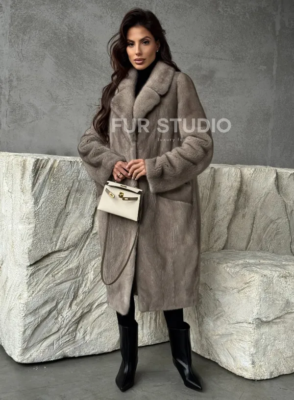 Норковая шуба в сером цвете "Тренд - 2026" доступна для покупки в нашем шоуруме Furs Studio в . У нас так же есть доставка во все города России. Добавьте немного роскоши в свой гардероб с этой шубой, которая будет служить вам многие годы.