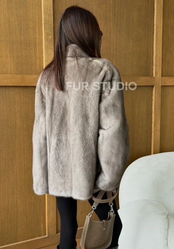 Норковый жакет в натуральном сером цвете 102737