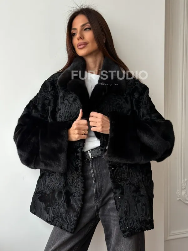 Полушубок из каракуля с норкой доступна для покупки в нашем шоуруме Furs Studio в . У нас так же есть доставка во все города России. Добавьте немного роскоши в свой гардероб с этой шубой, которая будет служить вам многие годы.