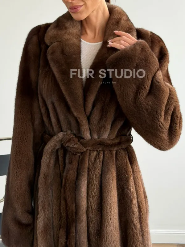 Прямая шуба из норки с поясом доступна для покупки в нашем шоуруме Furs Studio в . У нас так же есть доставка во все города России. Добавьте немного роскоши в свой гардероб с этой шубой, которая будет служить вам многие годы.