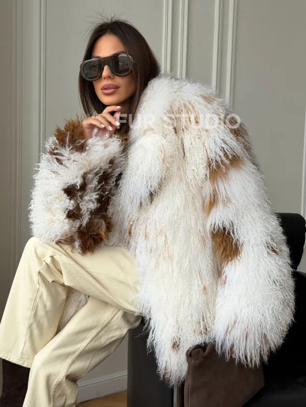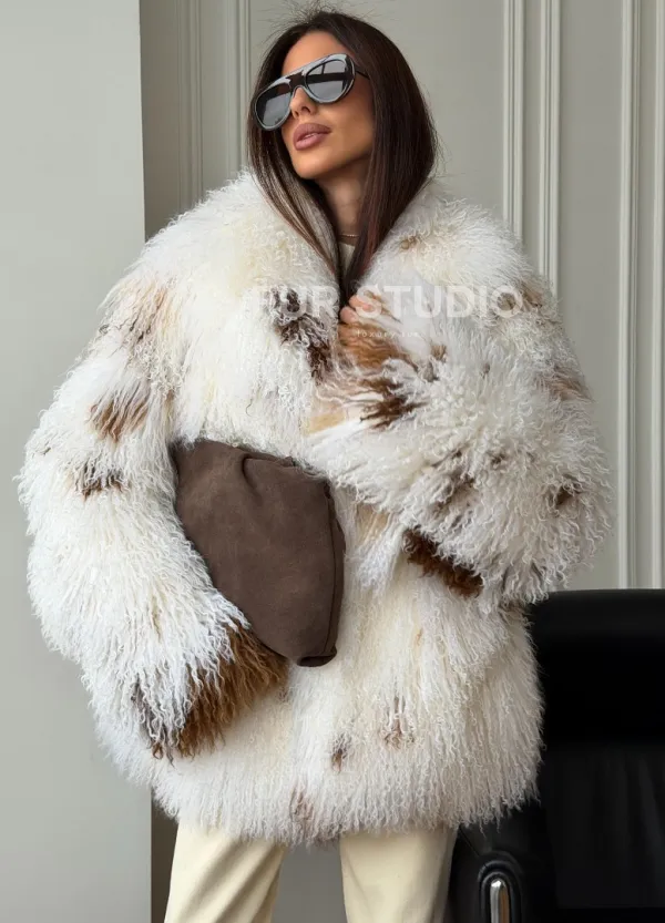 Шуба из ламы бело-коричневая 102550