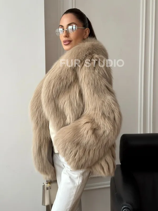 Мех данной шубы лиса, цвет бежевый. Предлагается в размерах от 40 до 50. Длина модели 65-70 см, что выгодно подчеркивает фигуру девушек. Эта модель идеально подойдет для девушек и женщин, предпочитающих роскошные натуральные меха.
