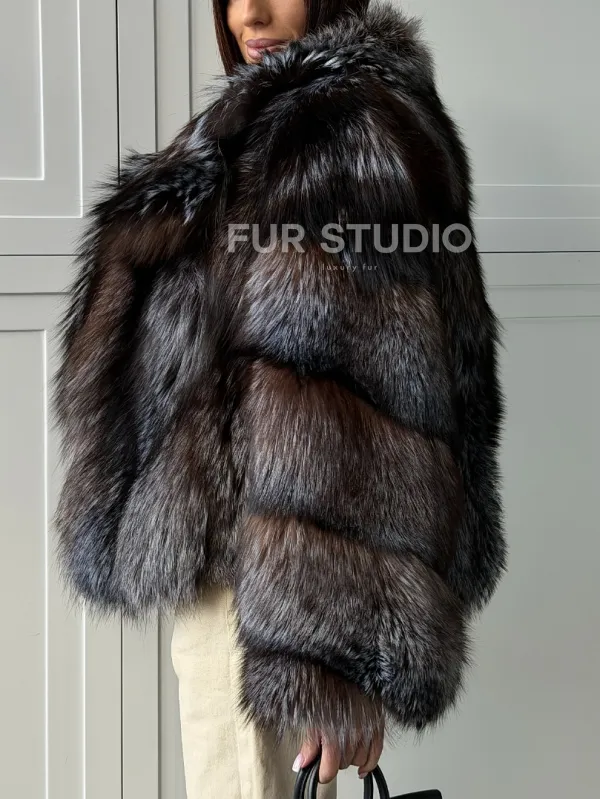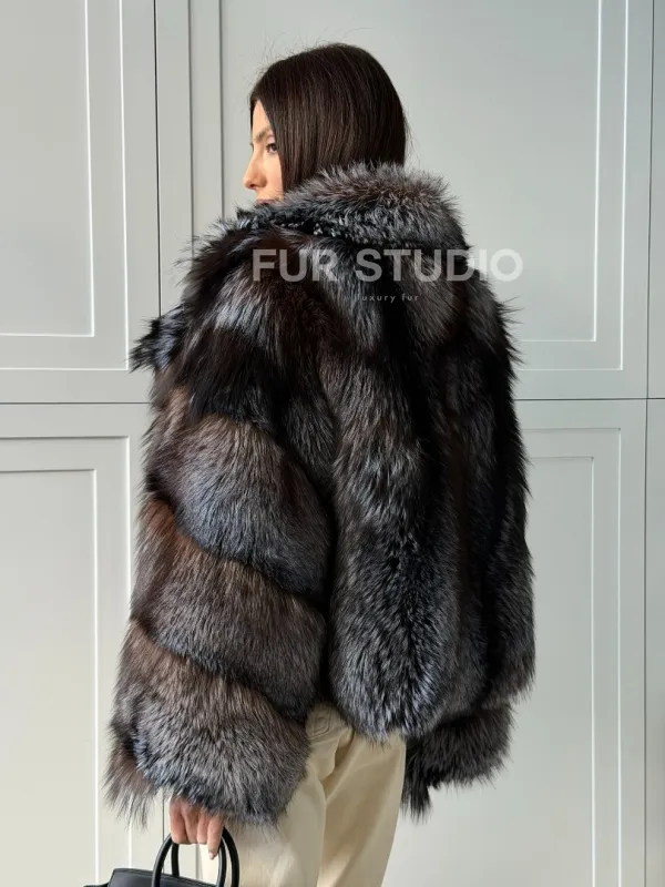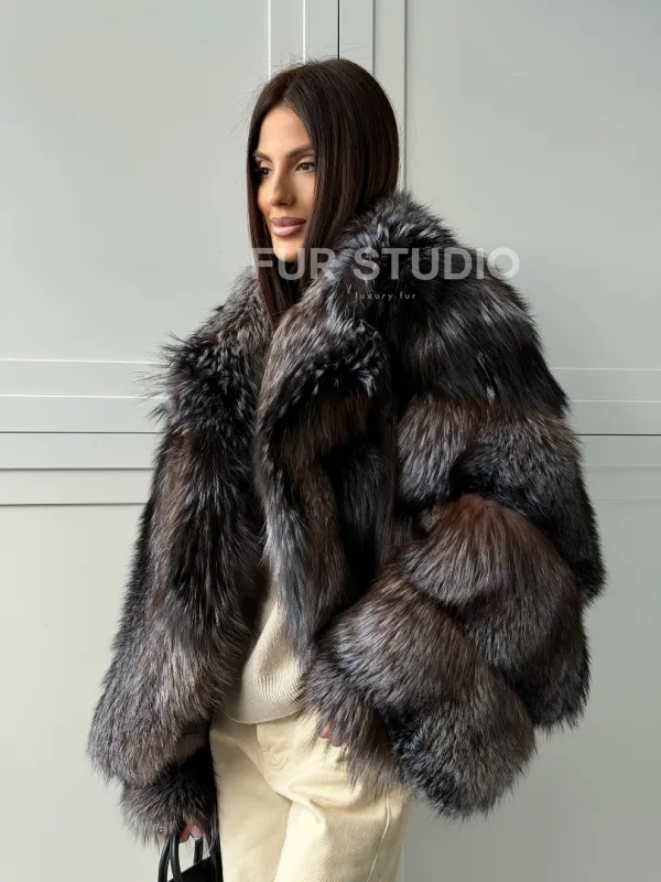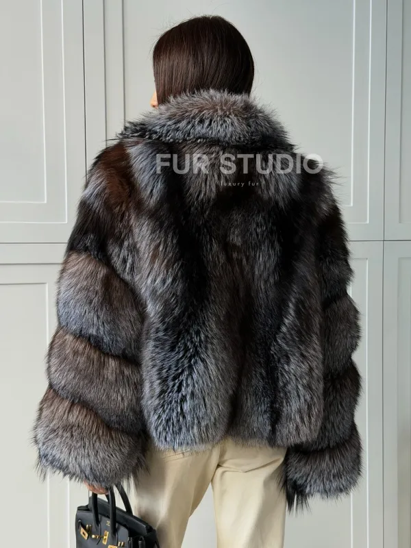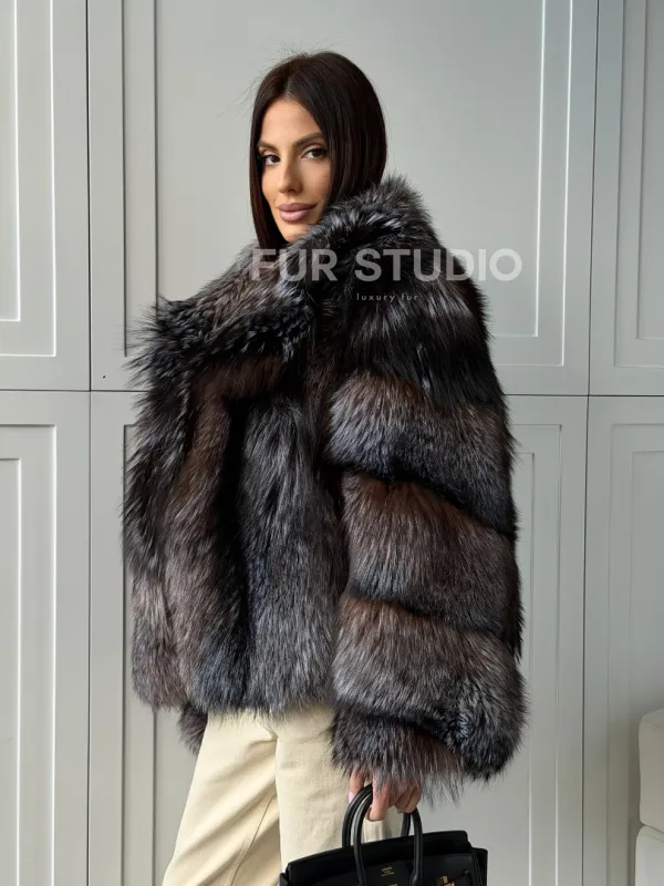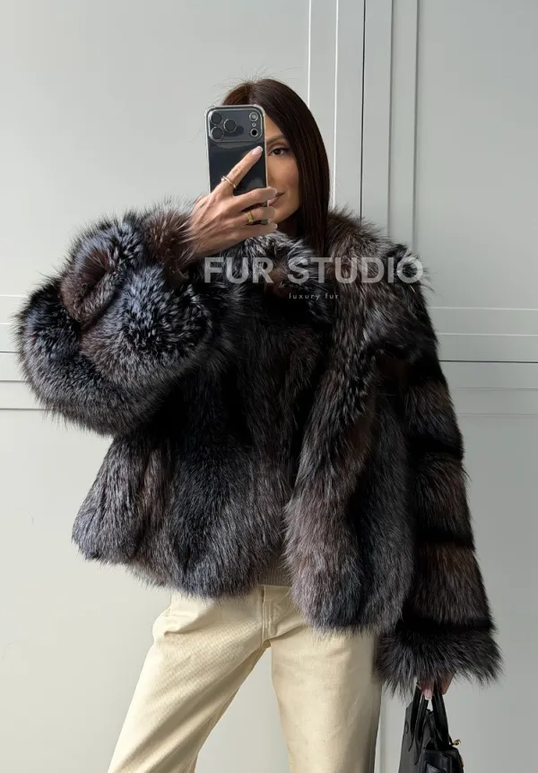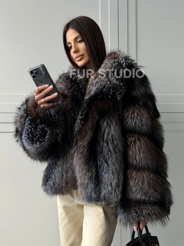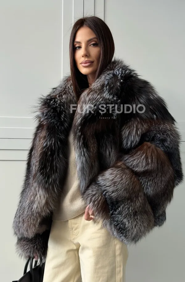 Мех данной шубы лиса, цвет серый. Предлагается в размерах от 40 до 48. Длина модели 55-60 см, что выгодно подчеркивает фигуру девушек. Эта модель идеально подойдет для девушек и женщин, предпочитающих роскошные натуральные меха.