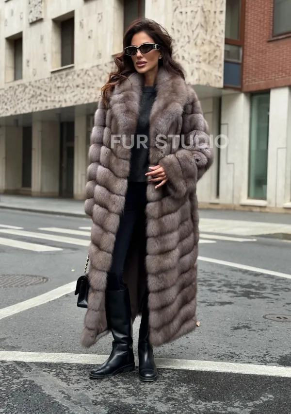 Мех данной шубы лесная куница, цвет натуральный. Предлагается в размерах от 42 до 50. Длина модели 125-130 см, что выгодно подчеркивает фигуру девушек. Эта модель идеально подойдет для девушек и женщин, предпочитающих роскошные натуральные меха.