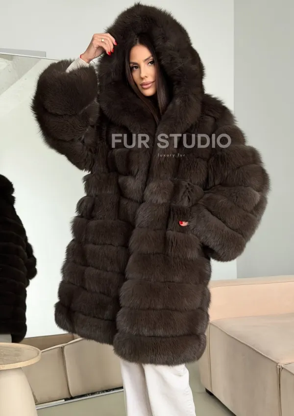 Шуба из песца с капюшоном доступна для покупки в нашем шоуруме Furs Studio в . У нас так же есть доставка во все города России. Добавьте немного роскоши в свой гардероб с этой шубой, которая будет служить вам многие годы.
