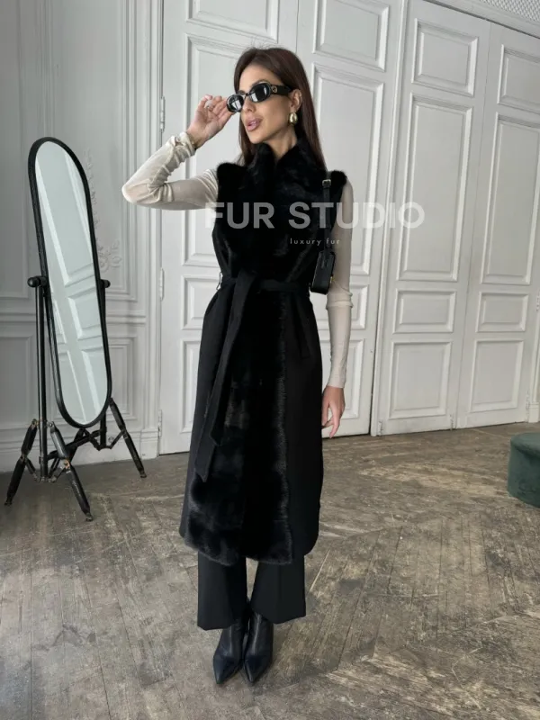 Стильное кашемировое пальто с мехом норки 100892