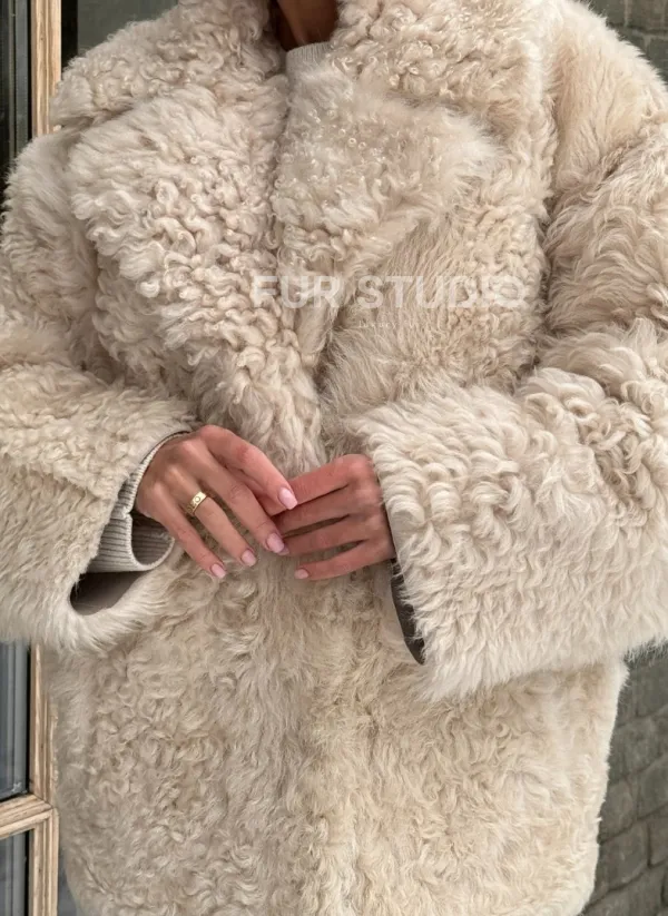 Светлая короткая шуба из испанской овчины 101438