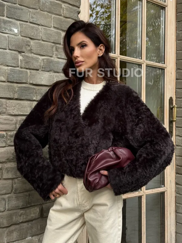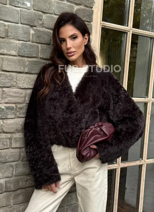 Укороченная шуба из овчины калган. Модель предлагается в размерах от 42 до 48. Оптимальная длина моделей 45-50 см подчеркивает линии вашей фигуры. Эта дубленка станет неотъемлемой частью гардероба для тех, кто предпочитает роскошь и утонченность натуральной кожи.