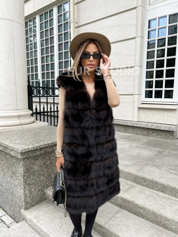 Жилет из куницы в цвете соболь – выбор современных девушек с тонким вкусом. Меховой жилет это тренд сезона вне зависимости от времени года. Каждая модница должна иметь этот аксессуар в своем гардеробе. Качество изделия будет радовать владелицу долгие годы. Куница приятна на ощупь и практически невесома. Прямой крой зрительно удлиняет силуэт и скрывает недостатки фигуры.