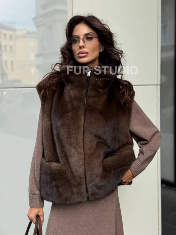 Жилет из норки доступен для покупки в нашем шоуруме Furs Studio в . Мы также предлагаем удобную доставку во все города России. Приобретите немного роскоши для вашего гардероба с этой осенью-зимой!
